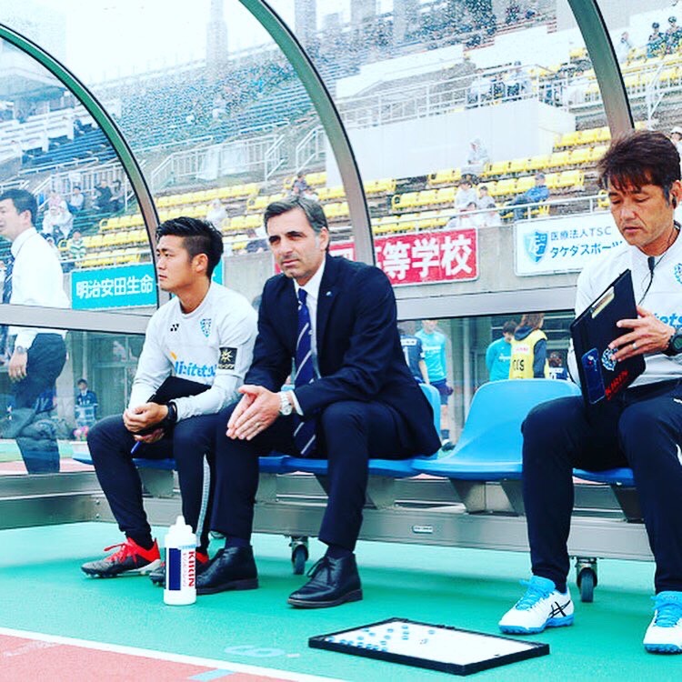 その後、度重なる怪我をきっかけに指導者の道へ進む決意を固め、スペインサッカー協会公認コーチライセンスを取得。スペイン4部のチームでセカンドコーチとして指導者の道を歩み始め、バルサアカデミー奈良校の立ち上げを機に日本へ帰国。その半年後にはJ1クラブ・アビスパ福岡で通訳兼コーチを務めます。