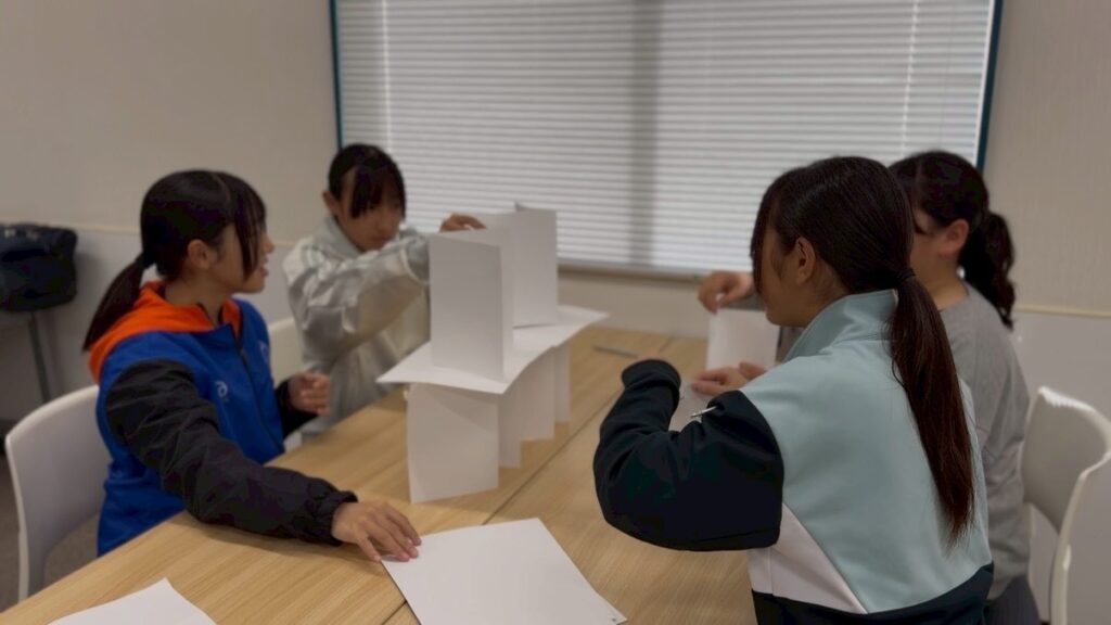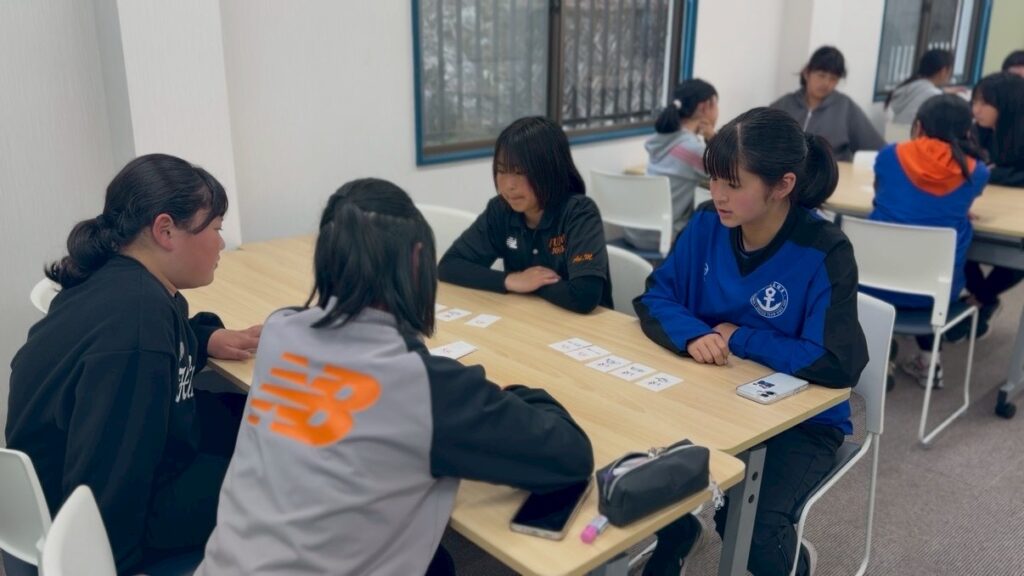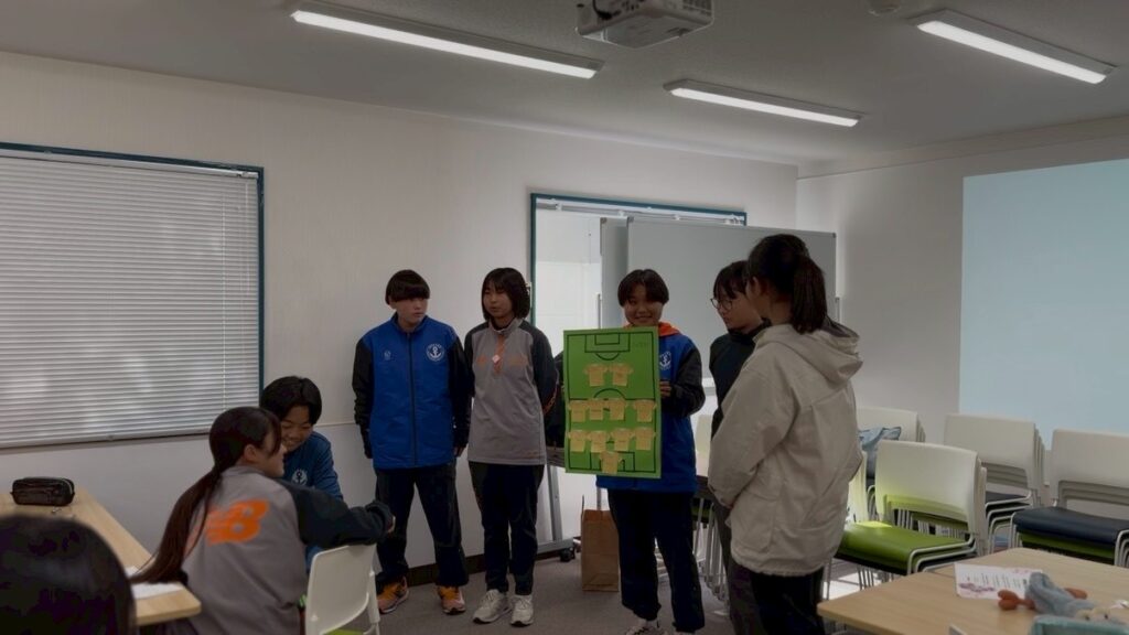 プログラムは、中高生でも取り組みやすいチームビルディングのワークショップを中心に、3部構成で2日間にわたり実施しました。新中学1年生の選手も参加している中で、年齢や状況に応じて内容を調整しながら進行し、一人ひとりの考えに触れ、対話を重ねる時間となりました。